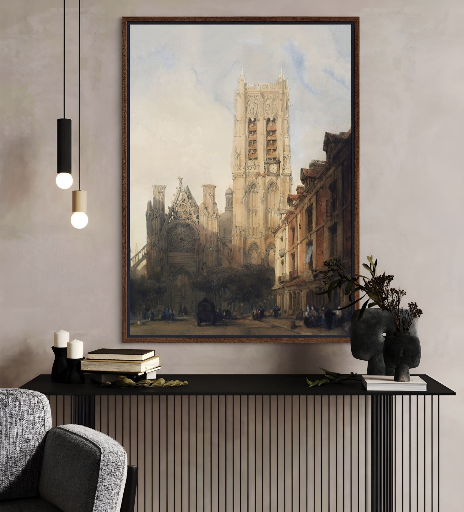 This depiction of the Church of St. Jacques in Dieppe captures the Gothic monument with remarkable precision and sensitivity. Roberts highlights the ornate stonework and soaring verticality of the church while bathing the scene in natural light.